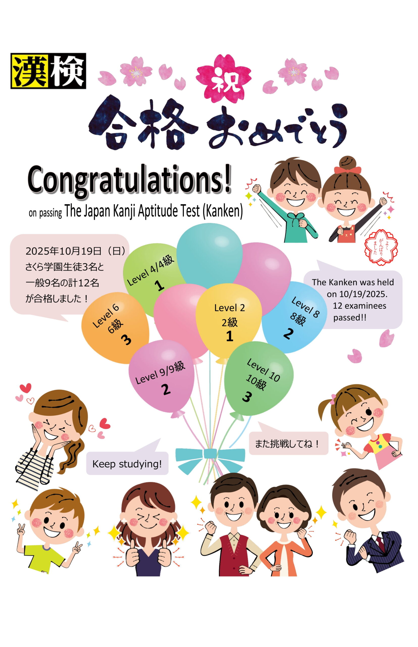 2025年10月漢字検定試験結果 The Japan Kanji Aptitude Test (Kanken) in October, 2025 Result