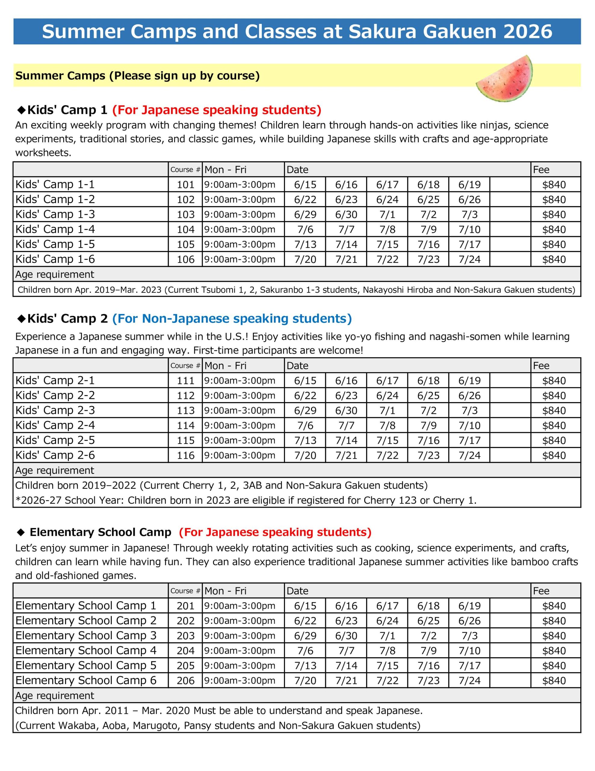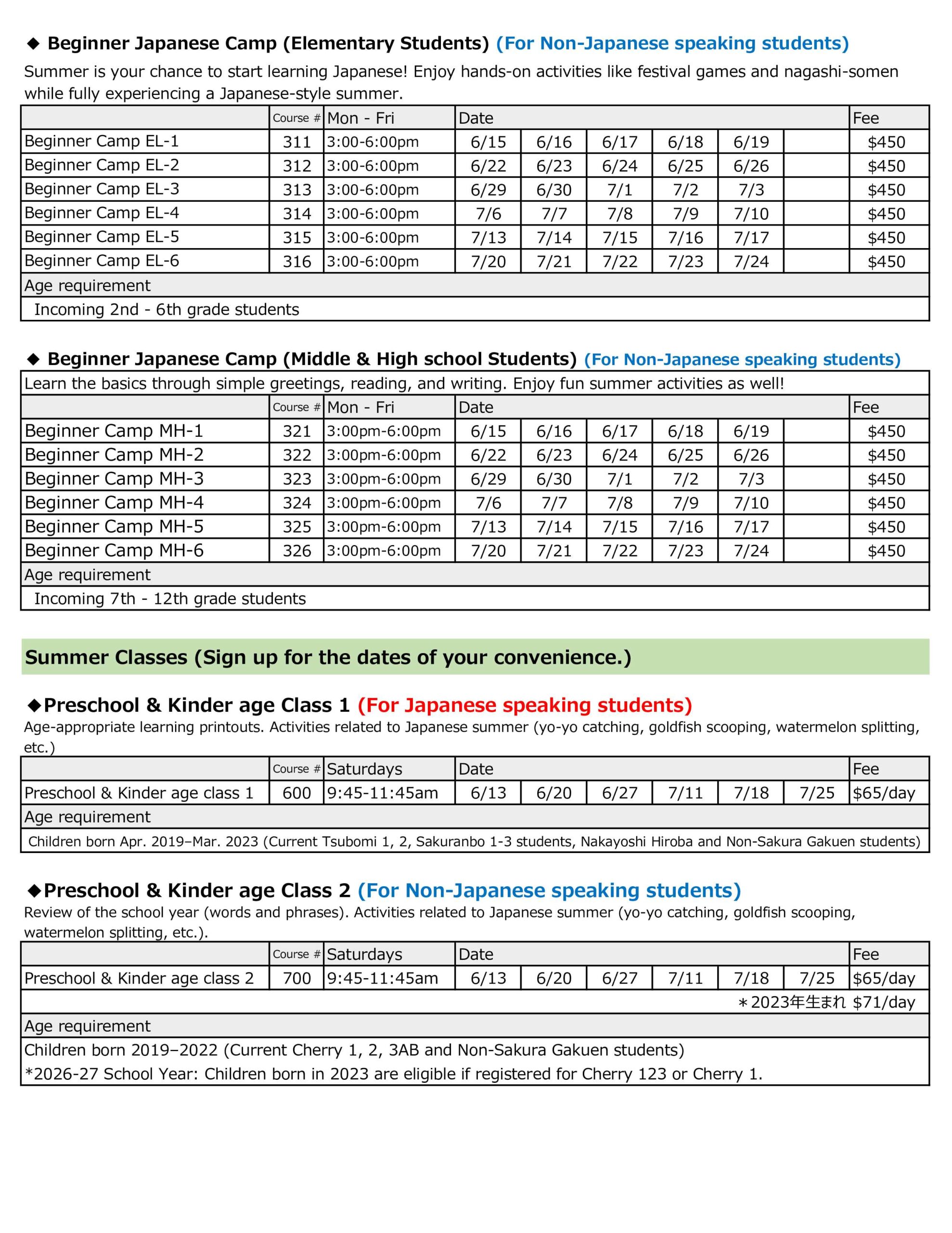 2026 夏のキャンプとクラス
